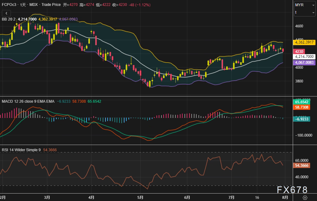 竞争油脂拖累与基本面双重施压 亚洲时段,芝加哥期货交易所(CBOT)豆油合约下跌0.98%,大连商品交易所豆油(DBYcv1)和棕榈油(DCPcv1)分别下滑0.63%和0.8%,直接压制棕榈油市场情绪。吉隆坡交易机构Iceberg X的自营交易员David Ng指出:"棕榈油价格正跟随竞争油脂同步走弱,而产量回升和出口低迷的担忧进一步加剧了抛压。" 最新船运调查数据显示,7月马来西亚棕榈油出口环比下降6.7%-9.6%,降幅较上月扩大。尽管林吉特兑美元贬值0.59%理论上提振出口竞争力,但主要进口国补库需求未见起色。值得注意的是,今年1-5月马来西亚对美国棕榈油出口同比激增51.8%至9.3万吨,但这一增量难以抵消传统买家印度和中国的采购放缓。 产量周期与生物柴油需求变量 随着东南亚进入季节性增产周期,市场对库存重建的忧虑升温。知名机构分析师在近期报告中提到:"若8月产量环比增幅超过10%,库存可能突破200万吨关口,这将考验多头防线。"此外,国际原油价格波动亦间接抑制棕榈油表现。布伦特原油日内下跌0.59%至78.81美元/桶,削弱了棕榈油作为生物柴油原料的经济性。 不过,政策面潜在支撑仍需关注。马来西亚种植与原产业部近期强调将维持B20生物柴油强制掺混政策,印尼亦在评估扩大生柴出口配额的可能性。某新加坡大宗商品研究主管认为:"若原油价格站稳80美元上方,或推动东南亚国家加速生柴项目落地,届时棕榈油工业需求可能迎来边际改善。" 机构观点:短期承压与长期分化 多数机构对短期走势持谨慎态度。吉隆坡某头部贸易商分析团队称:"当前技术面呈现收敛形态,若4230-4250林吉特支撑带失守,价格可能下探4100林吉特前低。"但也有观点提示超跌机会。新加坡植物油分析师James Lee指出:"三季度末通常伴随北半球节日备货启动,若8月出口环比改善,叠加林吉特汇率优势,价格或迎来修复窗口。"