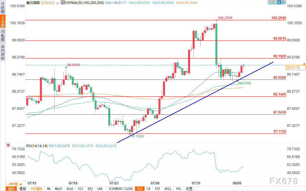 XM外汇官网APP讯——周二(8月5日)欧洲时段,美元指数(DXY)小幅走高,但低于99.00关口。疲弱的美国就业和制造业数据、美联储的鸽派信号以及围绕金砖国家的地缘政治紧张局势加剧限制美元大幅走高。