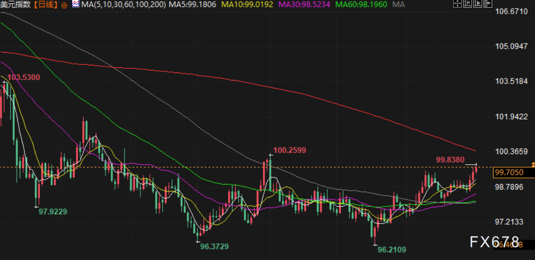 受货币政策预期差的影响,美元指数周五上涨0.35%,至99.82,月度涨幅达到2%,为7月以来最佳表现。道富的Noel Dixon评论道,他预期美元指数将在约102的技术阻力位下方盘整,并在明年经济增长可能加速的情况下走强。他补充说:“从持仓的角度来看,很明显投资者——至少从实际资金的角度——已经在空头部位上达到极限,所以我认为现在要做空美元是困难的。”