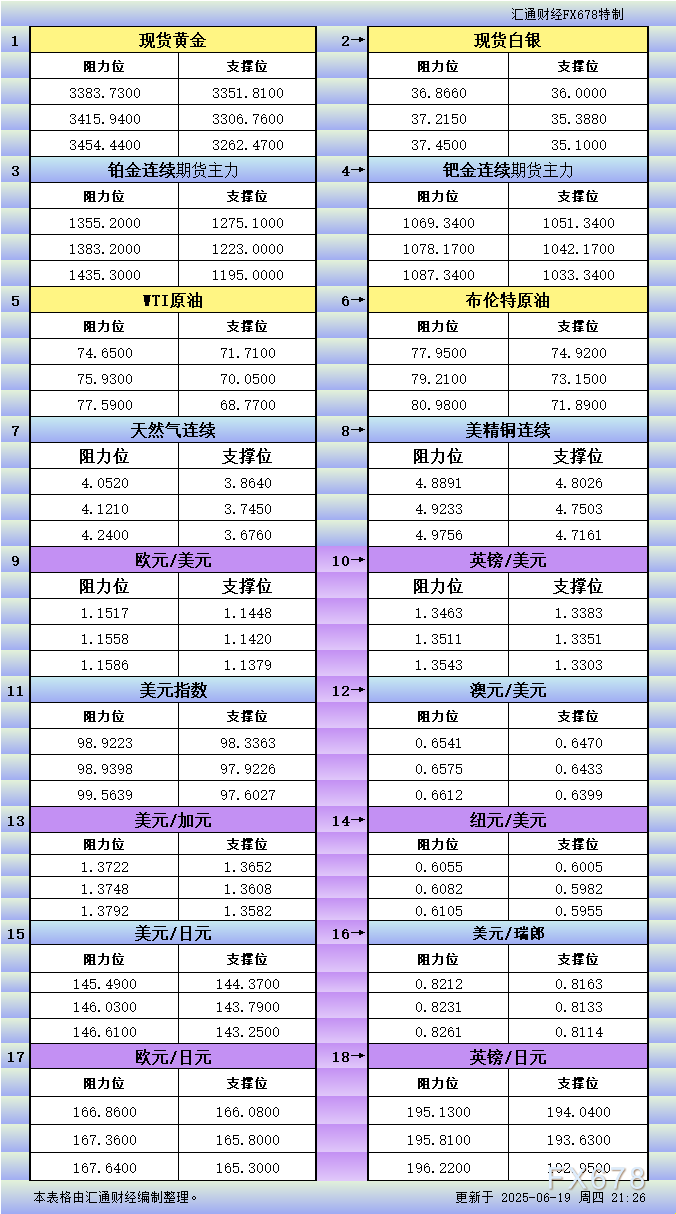 XM官网官网一张图看商品支撑阻力:金银油气+铂钯铜农产品期货(2025年6月18